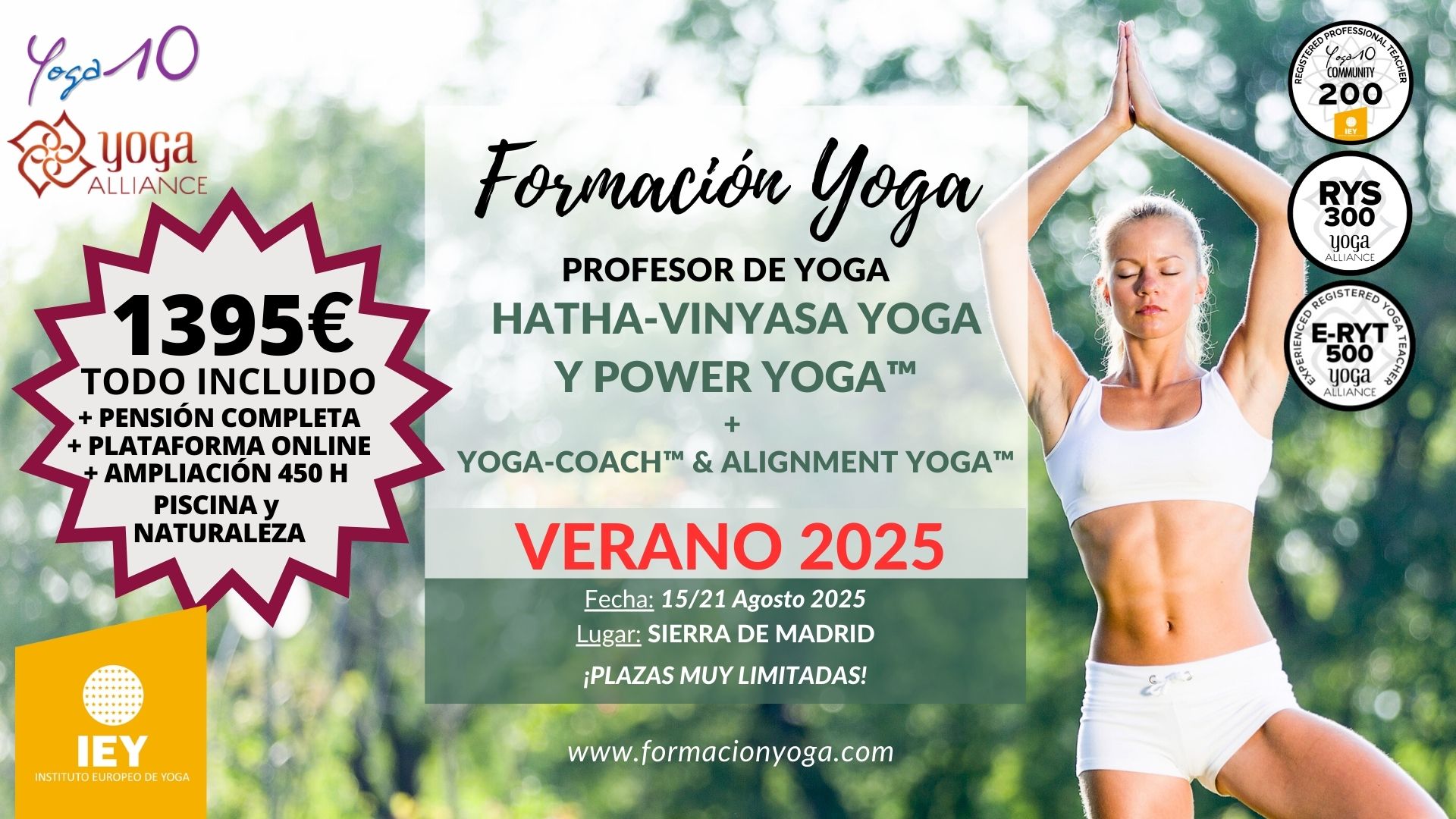 ¿Más ventajas?: Publicidad Gratuita, Reciclaje Gratuito, Certificaciones Internacionales, integración en la Red Yoga10, uso de los logos IEY y Yoga10, uso legal de marcas registradas, descuentos en otras formaciones…Te animas?. Llámanos e infórmate! (657970633).