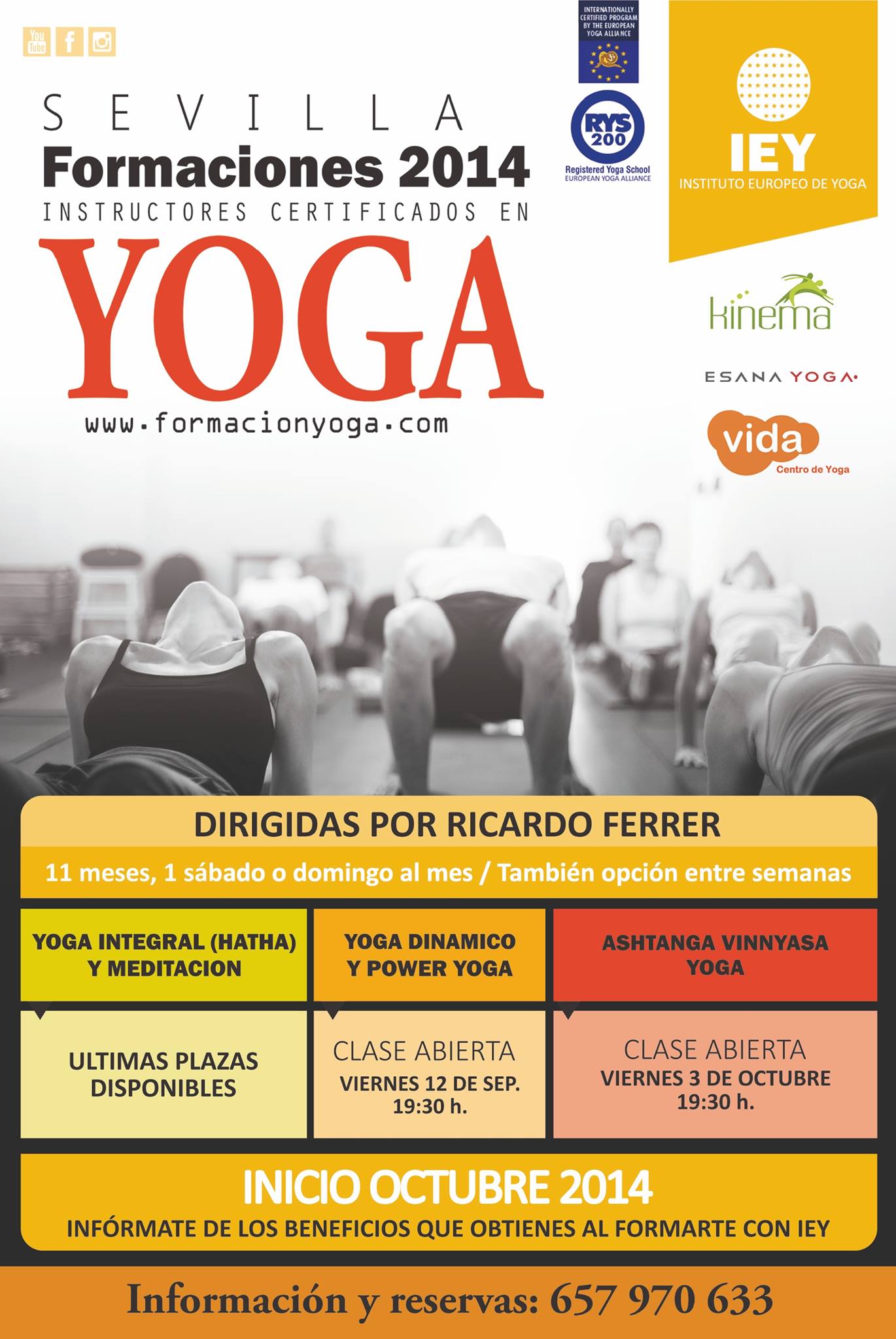 Este Viernes 12 de Septiembre a las 19:30 tienes la oportunidad de disfrutar de una Masterclass abierta con motivo del próximo inicio de las formaciones profesionales de Yoga en Sevilla y otras provincias españolas.