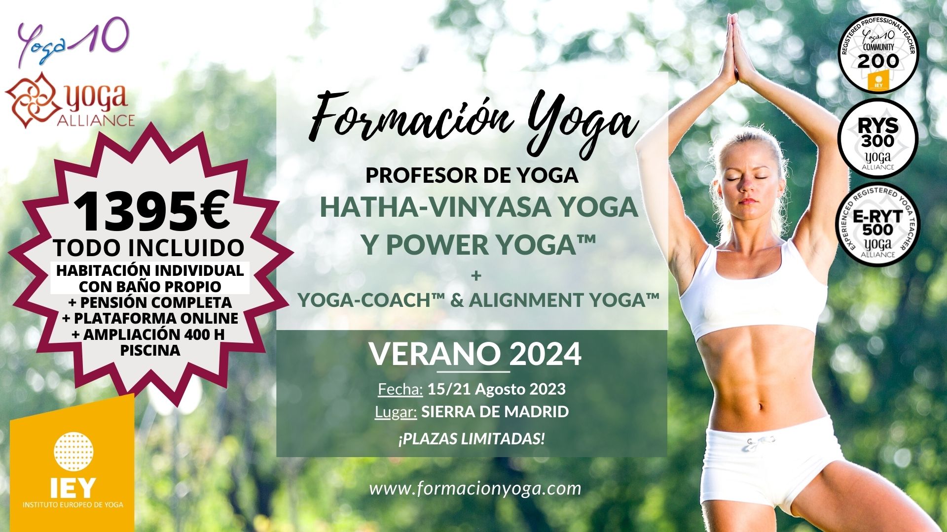 ¿Más ventajas?: Publicidad Gratuita, Reciclaje Gratuito, Certificaciones Internacionales, integración en la Red Yoga10, uso de los logos IEY y Yoga10, uso legal de marcas registradas, descuentos en otras formaciones…Te animas?. Llámanos e infórmate! (657970633).